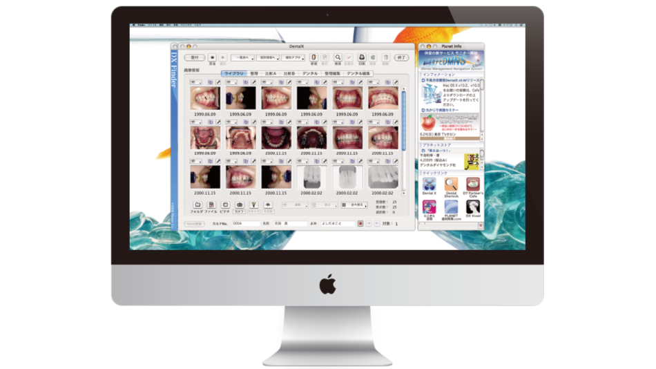 オリエント歯科では、患者さんにわかりやすく説明をするため、治療前後の変化の確認などのためにお口の中の写真を撮らせていただいています。ほとんどの患者さんに対して少なくない写真を撮りますので、必然的にその量は膨大な量になってしまいます。そのため当院では「Dental X」というソフト使用し、これらの画像データを管理しています。