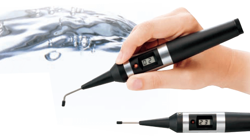 電気歯髄診断器は、弱い電流を歯に通電して電気的刺激を与え、歯の神経を刺激して誘発させた痛みあるいは違和感の有無によって、その生死を判定する診査法です。バラエティ番組などのようなビリビリするものではありませんので、安心してください。