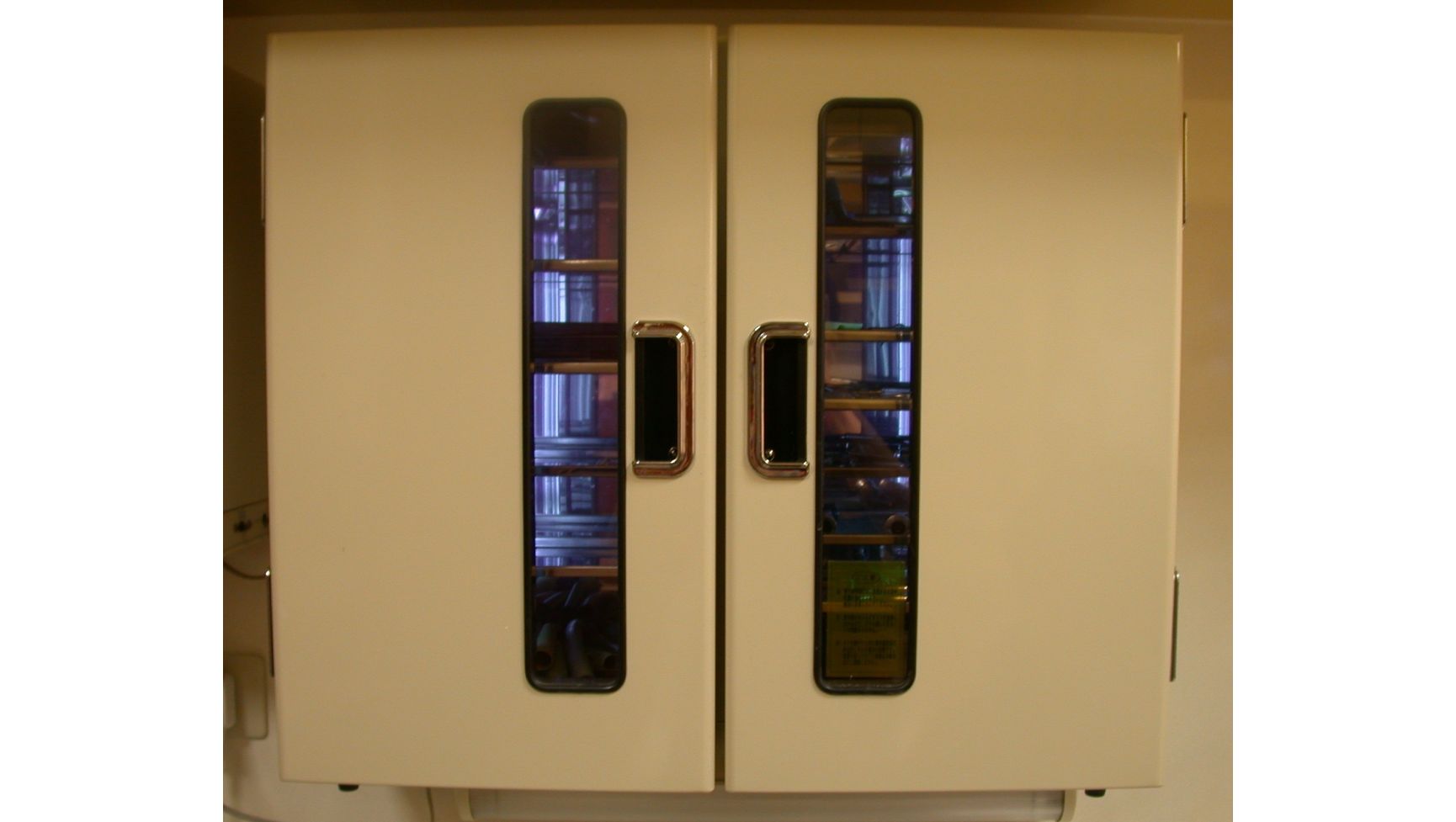 滅菌した治療器具を、ここにて保管いたします。治療の際には、ここから準備いたします。