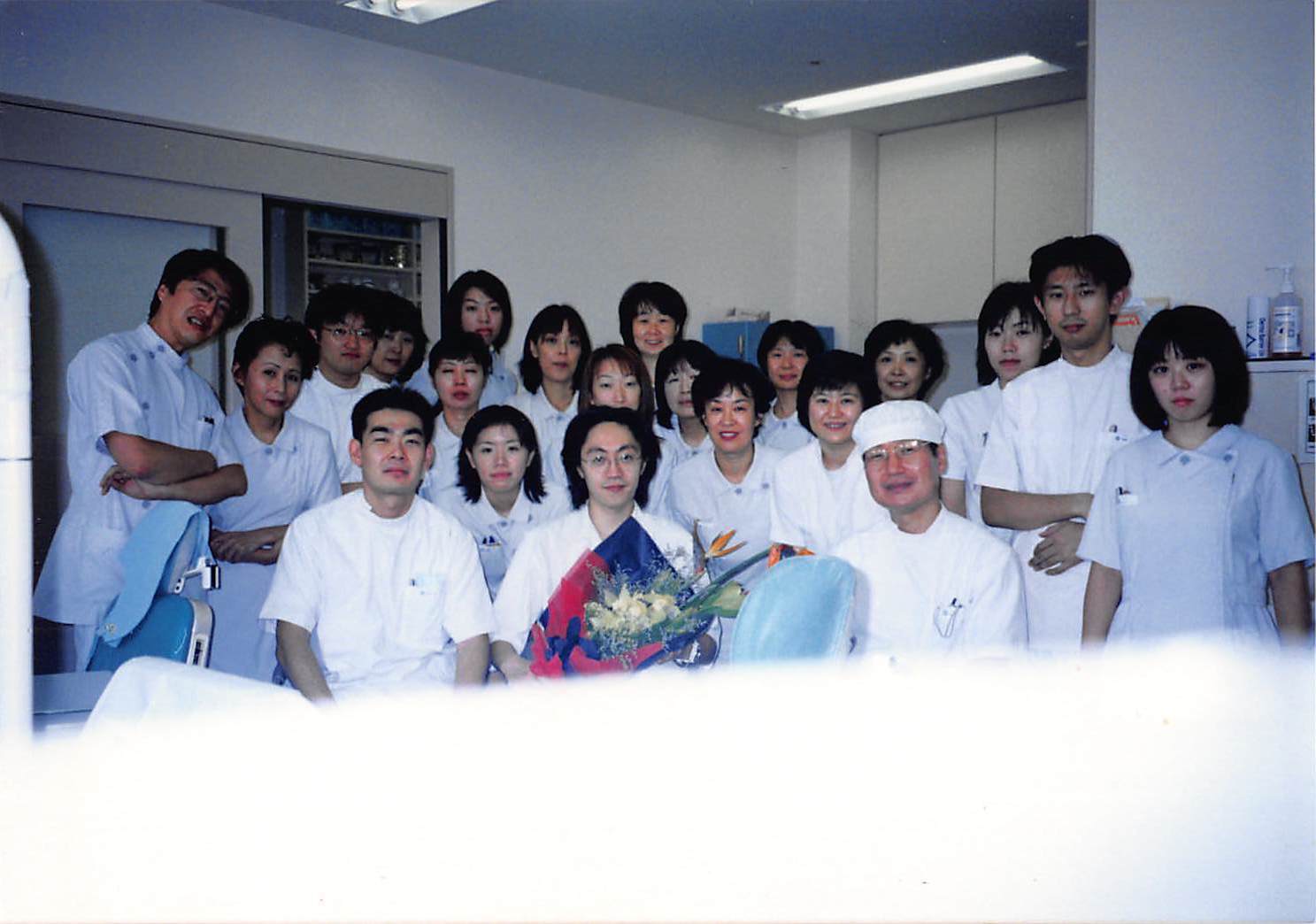 平成17年4月には、二代目院長に就任。歯科医療は僕一人ではできません。歯科衛生士、受付ら院内スタッフらはもちろん、歯科技工士さん、歯科器材屋さん、医療機器メーカーさん、その他いろいろお世話になっている業者さんの協力なくしては成立しません。院長になってから、チーム医療の大変さと楽しさ、喜びを感じました。特に、理想の歯科医療を目指すには、スタッフとのチームワークが非常に大切だと感じました。