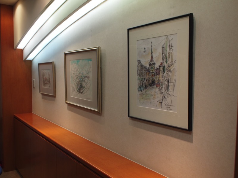 同年7月、今まで2階にあった診療室を1階に移し、リニューアルしました。当時、歯科クリニックらしくないデザインが流行り始めた頃かと思いますが、考えていた当初のコンセプトは「カフェ」でした。しかし、デザイナーの方と色々と相談しているうちに、居心地の良い空間を目指していたら、いつのまにか「実家」のようなウッディーな感じになっていました(笑)。診療室には父の描いた絵を飾り、来院された方々にも非常に好評です。季節ごとにこの絵は変えていますので、健診時期ごとに違う雰囲気が味わえます♪