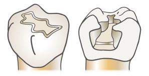 当時、奥歯では、いわゆる銀歯で治すことが普通でした。その際には、むし歯になった部分だけではなく、なりそうな部分(この時点ではむし歯ではない部分です)も含めて被せる事となっていました (予防拡大といいます)。