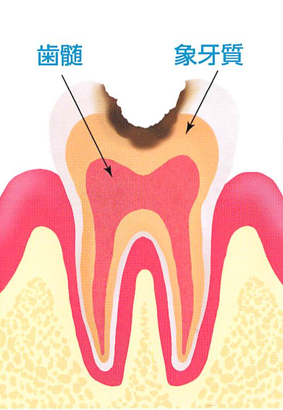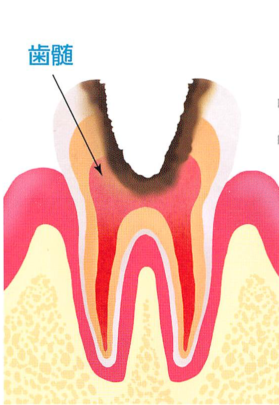 4.むし歯の範囲が歯髄(神経)まで到達してしまった大きなむし歯の場合