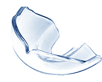 この装置は、上下のマウスピースが一体となったような形態をしており、夜間就寝時に装着します。この時、寝る前と起きた後に装置を噛みしめてもらいます。1回あたり5~10秒間噛みしめ、その後1秒間休んで、再び噛みしめます。これを50回それぞれ夜と朝にやるのです。