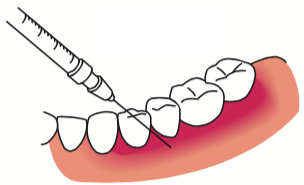 基本的な治療で治りきらない場合には、歯周外科治療を行うことがあります。これには、外側からのスケーリング・ルートプレーニングでは届かない歯石を歯ぐきを切開して徹底的に取り除いたり、治療後に残る歯周ポケットをプラークが溜まりにくくなるように浅くする手術のことをいいます。中等度から重度の患者さん向けの治療です。