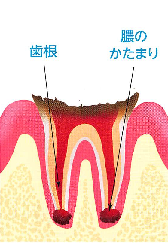 4.むし歯の範囲が歯髄(神経)まで到達してしまった大きなむし歯の場合