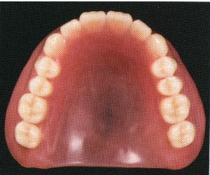 歯ぐきに似せた色のレジン(樹脂)で作られています。 保険適用になっていますので、手頃な価格で作ることができます。また、壊れた時にも修理が非常にしやすい利点があります。 しかし、壊れやすく、また一定の強度を出すためには厚みが必要なので、金属床に比べるとかなり厚く感じます。熱の電動が悪いので、食べ物の温度を感じにくい欠点があります。
