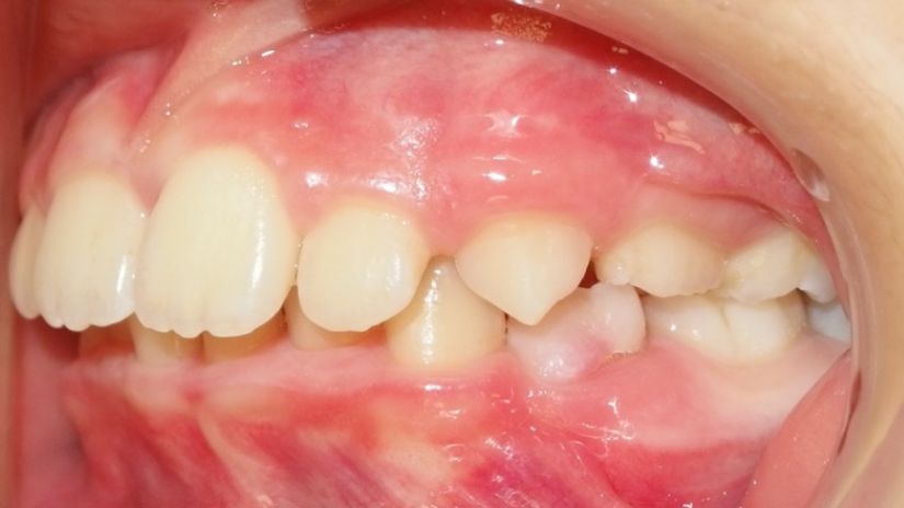 受け口とも呼ばれます。下顎の歯が上顎の歯に被ったりしている状態です。