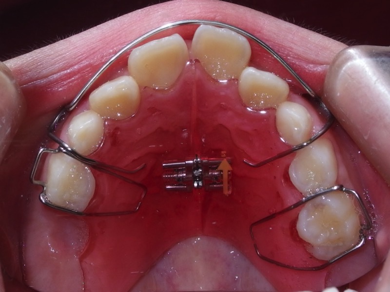 「床矯正」の考え方は、顎が小さく歯が並ぶことができないならば、歯を抜くのではなく、正しい顎の大きさに顎を拡大しようというものです。顎を拡大する装置を「可撤式床矯正装置(かてつしき・しょうきょうせいそうち)」といいます。 この装置は入れ歯と同じで、簡単に取り外しができます。入れ歯のプラスティックの部分を「床」といいます。入れ歯を利用してネジの装置で顎を広げたり、歯を動かす装置と考えてください。
