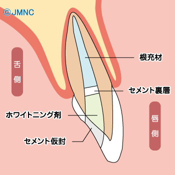変色の気になる神経のない歯に行いますが、レントゲン写真による緊密な根の治療が行われた場合に適応となります。根の中の詰めものがしっかり入っていない場合は、再度この治療を行うことが必要です。